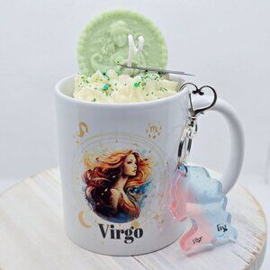 Virgo Zodiac Candle Gift Set – 11oz Mug Candle + Resin Keychain Handmade