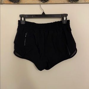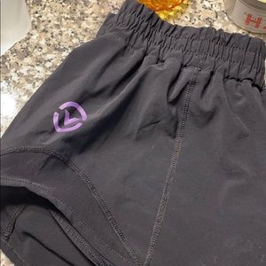 EUC - Black shorts with built in undies, purple detailing and back pocket zipper