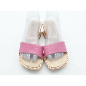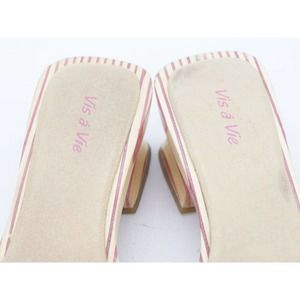 Vis A Vie Womens 9 Sandals Pink Leather Wood Slide Open Toe Slip On Summer Shoe