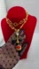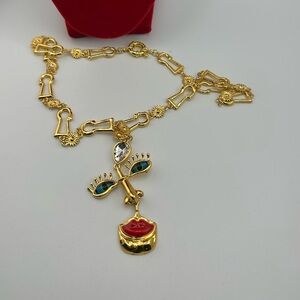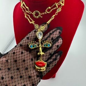 This stunning gold necklace features an artistic face pendant with colorful accents. Perfect for adding a unique touch to any outfit.