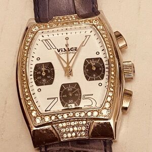 Visage Vintage Chronology Genuine Swarovski Crystals Square Large Purple Watch