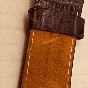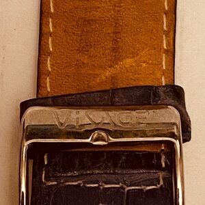 Visage Chronology Genuine Swarovski Crystals Square Large Face Purple Croc Watch. Square Shaped Face Large Readable. Purple crocs arm band. Logo embossed. Will need a battery. Three side knobs, stainless steel back. Total length 9” inches as pictured.