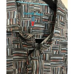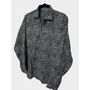 Visconte Black Mens Geo Multi Stretch Cotton Button Up Long Sleeves Shirts Sz S