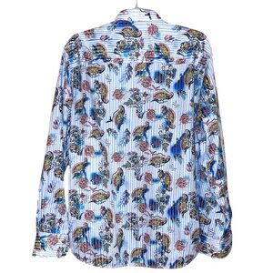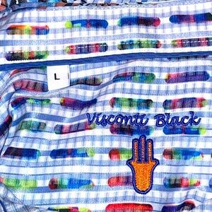 Visconti Black Button down CottonShirt Blue & white Check w/ multicolor print