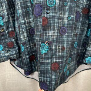 Visconti Black Long Sleeve Button Down Shirt Mens 3XLT Plaid Floral Print Cotton