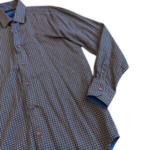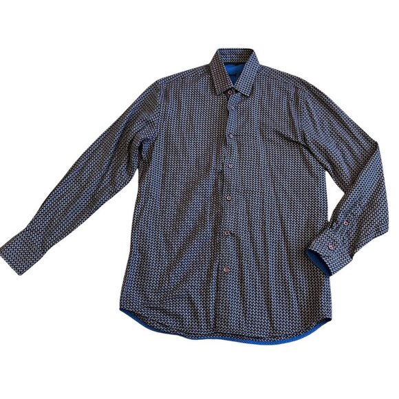 Visconti Black Long Sleeve Button-Down Shirt Black Colorful Print Size Medium