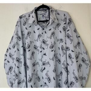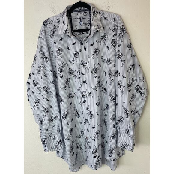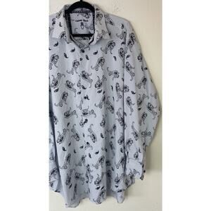 Visconti Black Shirt 2XLT Long Sleeve Button Down Light Blue Floral