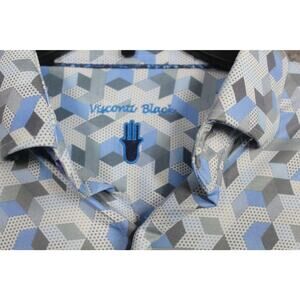 Visconti Black Shirt Mens Large Blue Geometric Long Sleeve Polyamide Psychedelic