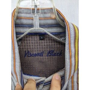 Visconti Black Shirt Men's Large Flip Cuff Multicolor