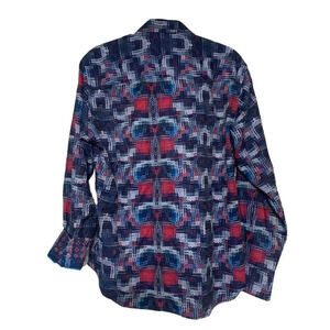 Visconti Black Shirt Mens Medium Flip Cuff Paisley Watercolor Art Collared (J24)