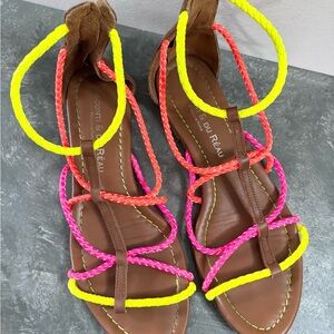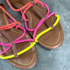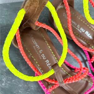Visconti & Du Reau strappy brown neon leather sandals size 6.5 EU 37