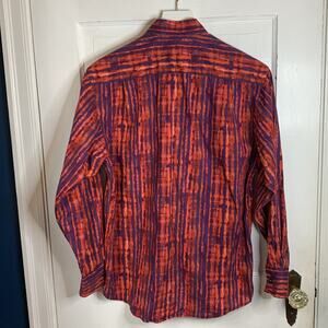 Visconti Men’s Orange Purple Tie Dye Look Designer Cotton Long-sleeve Shirt Sz S