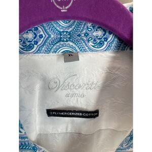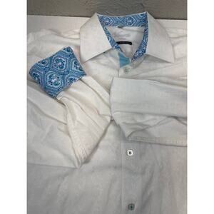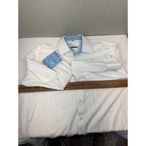 Visconti Uomo Mens White Paisley Flip Cuff Textured 2 Ply Cotton Dress Shirt XL