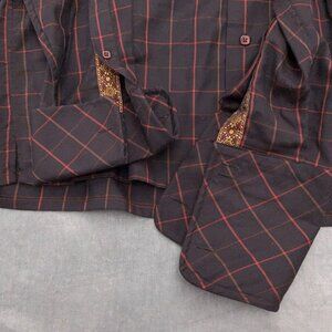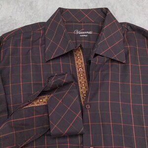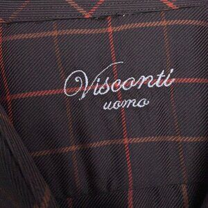Visconti Uomo Shirt Men 48 Brown Red Check Plaid Contrast Trim Cotton Italy