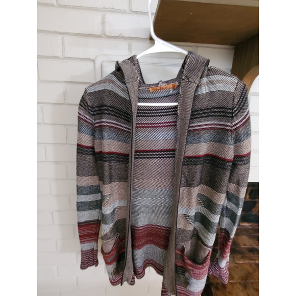 Size S Belladini cotton/viscose gray tan black red white open front long sleeves sweater with hood