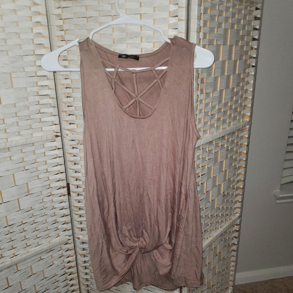 Beige top that has a flowy relaxing feel. Very soft cotton materi