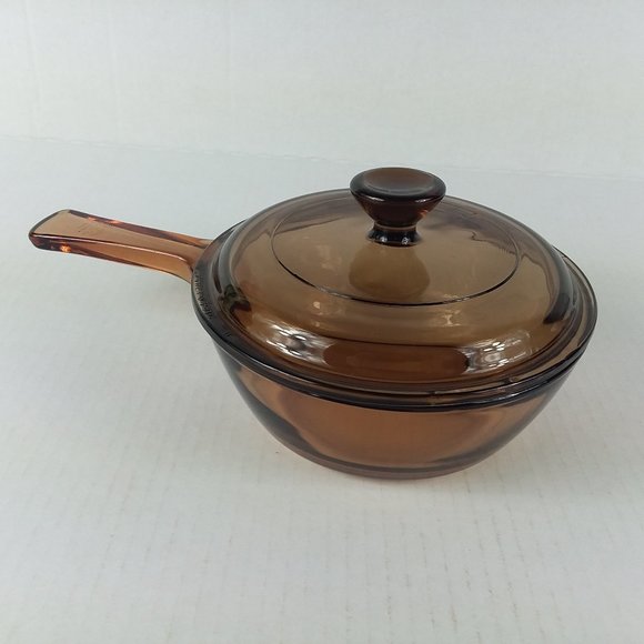Vision Corning Ware .5L Amber Glass Sauce Pot Pan Pyrex Lid USA
