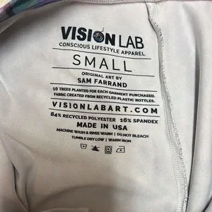 Vision Lab Bell Leggings/ Small. Well worn but their quality and pattern have not deminished at all. Look as good as the day they left the package. They are super comfortable and despite the texture of the material very light and breathable. I have worn them in multiple climates and never regretted it. Festival Outfit.