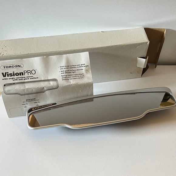 Vision Pro wide-angle rearview mirror with anti-glare surface. Never been used. Easy installation. Instructions included. Approximately14"x4"