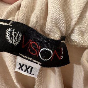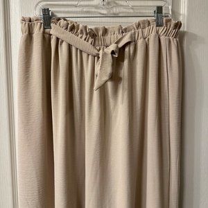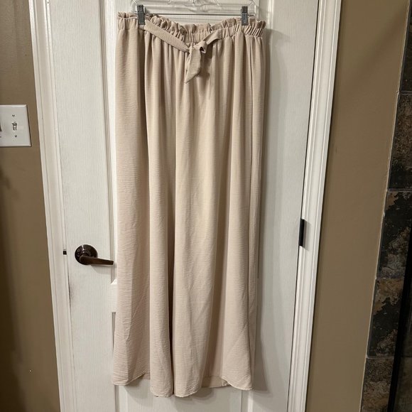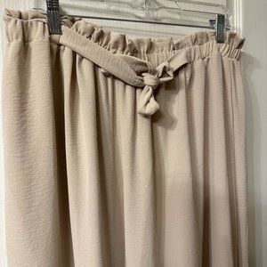 Vision USA | XXL Light Beige Crinkle Paper Bag Tie Front Wide Leg Pants Palazzo