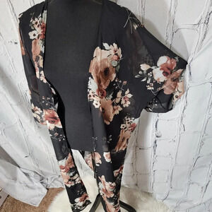 VISION Womens Large Flowy Open Front Side Slit Kimono Cardigan Boho Bohemian Floral