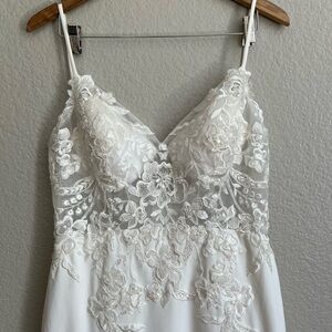 Lulus Vision of Romance White Sheer Mesh Embroidered Sequin Maxi Dress! This stunning dress features sheer white mesh, embellished with intricate floral embroidery, shimmering sequins, and dainty beaded details, that shapes a sleeveless bodice with padded cups, a V-neckline, and a flirty low-cut back, all supported by slender straps. The intricate embroidery continues through the fitted waist and cascades down the stretch knit, mermaid-style maxi skirt, with elegant chiffon godets and a dramatic train at the back. Hidden back zipper/clasp. Each bridal order will arrive with one branded canvas garment bag included for storage and protection.