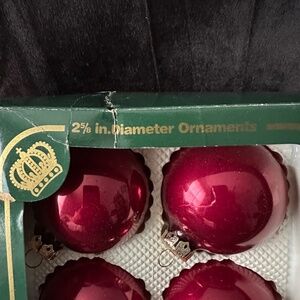 Visions by Holly set of 6 red glass ball Christmas tree ornaments in original box. American made 2.5/8” diameter