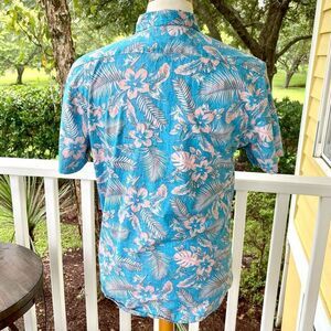 Excellent condition Visive Blue/Pink Hawaiian Shirt. Medium. 100% cotton. No known stains or damage. Very lightly worn. From smoke free pet free home. Measurements laying flat:
