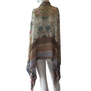 Vismaya Cream Multi Floral Mixed Print Sheer Kimono Cardigan or Jacket Size OS