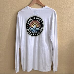 Good condition. Men’s Vissla long sleeve Crewneck tee. Features a left chest pocket and graphic on back.
