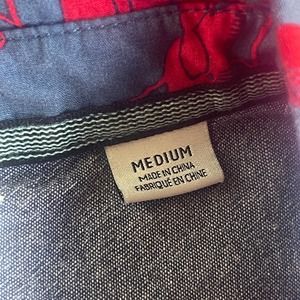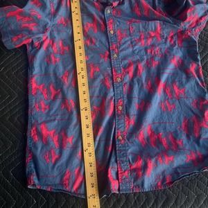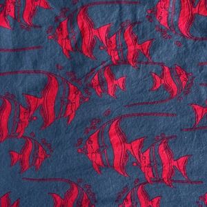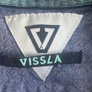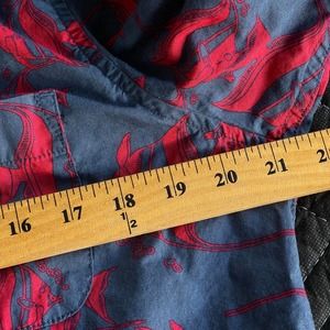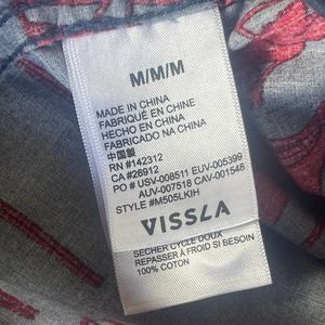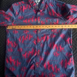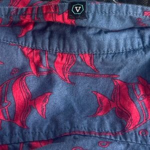 Vissla Shirt Mens Medium Blue Red Button Up Fish Print Short Sleeve Surf