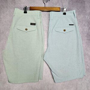 Vissla Shorts Mens 30 Lot of 2 Pair Blue Green Poly Cotton Blend Stretch Casual