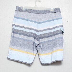 Vissla upcycle coconut poly stretch blue stripe swim trunks