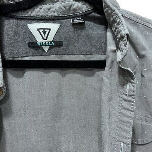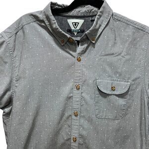 Vissla Short Sleeve Grey White Geometric Print Button Down Shirt Size Large