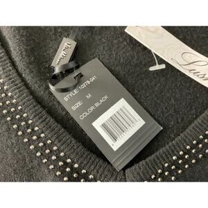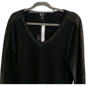 Vita Milano Black Sweater Studded Trim V-Neck Medium NWT