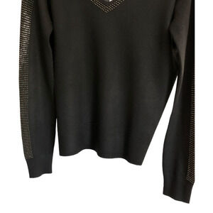 Vita Milano Black Sweater Studded Trim V-Neck Medium New