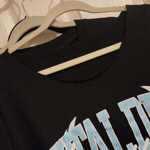 Modified for style! This is a brand new without tags Vital Apparel oversized heavyweight tee with the neckline carefully cut at the seam for a trendy off-shoulder look. “Vital Dept Athlete” collegiate-style graphic across the chest in distressed blue & white. Never worn, no flaws—just a custom touch for a unique fit!