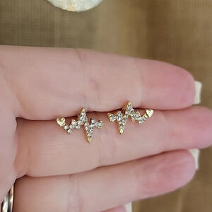 EKG heartbeat in shimmering micro crystals with 16k goldplated heart. Hypoallergenic posts.