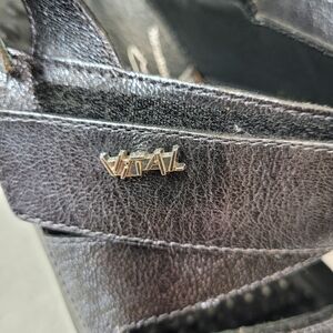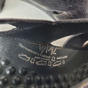 blue, gray metallic color size 41 velcro strap on top for easy fast closure also adjustable strap in the back. made in Austria
