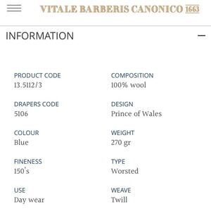 Tailored suiting dress custom-made using Vitale Barberis Canonico’s super 140’ S wool. This fabric is characterized by a silky hand and lustre as a result of the high quality of the materials used to create it. Classic Prince of Wales design. Fully lined.