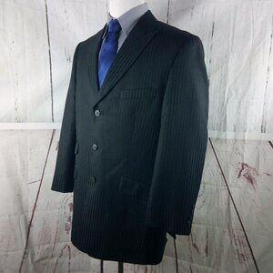 Vitaliano Super 150's 44L 3 Button Black Herringbone Striped Suit Blazer Jacket