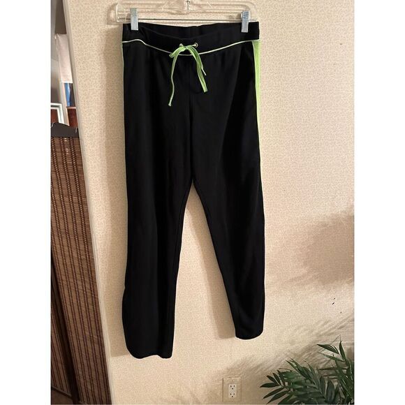 Ladies track pants with draw string waist. the waist measures 29 inches and the inseam is 28 inches