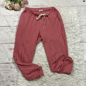 Vitamin A Kennedy sunkissed pink colored hemp blend drawstring high rise lounge joggers. These joggers are in great used condition