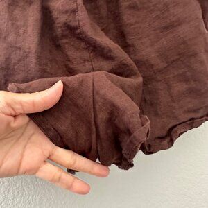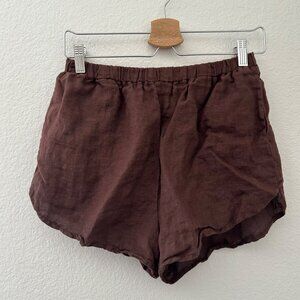 Vitamin A Linen Flat Front Shorts High Rise Lightweight Breezy Minimalist Brown