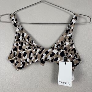 Vitamin A Lou Cheetah Tie Front Bikini Top Tan Size 12