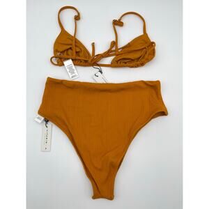 Vitamin A | NEW EcoRib Topaz Bikini Triangle Top Barcelona High Waisted Bottom L