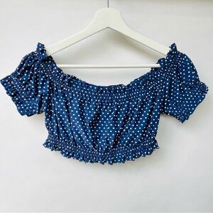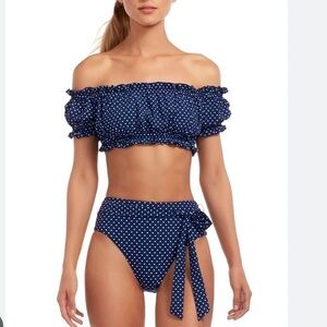 NWT Vitamin A off shoulder swim top in blue / white polka dots prints