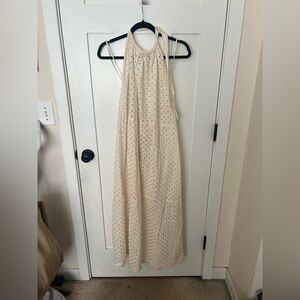 Vitamin A Women's Eyelet Halter Maxi Cover Up Dress White XL Cotton Linen Blend