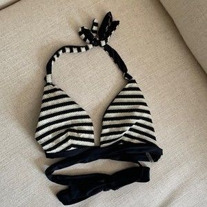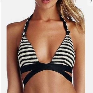 Vitamin A Wrap Bikini Top Black and White Striped *TOP ONLY*