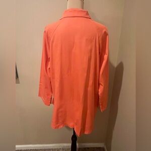 Elevate your wardrobe with this stylish coral button-up shirt. Perfect for any occasion, this top offers a blend of comfort and elegance.